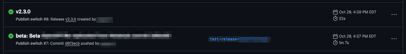 NOTE: I've omitted the particulars of the actual GitHub Actions publishing files themselves, because they're outside the scope of this article, but if you'd like to see them in their entirety, the production publishing workflow file is here, and the beta publishing workflow file is here.
